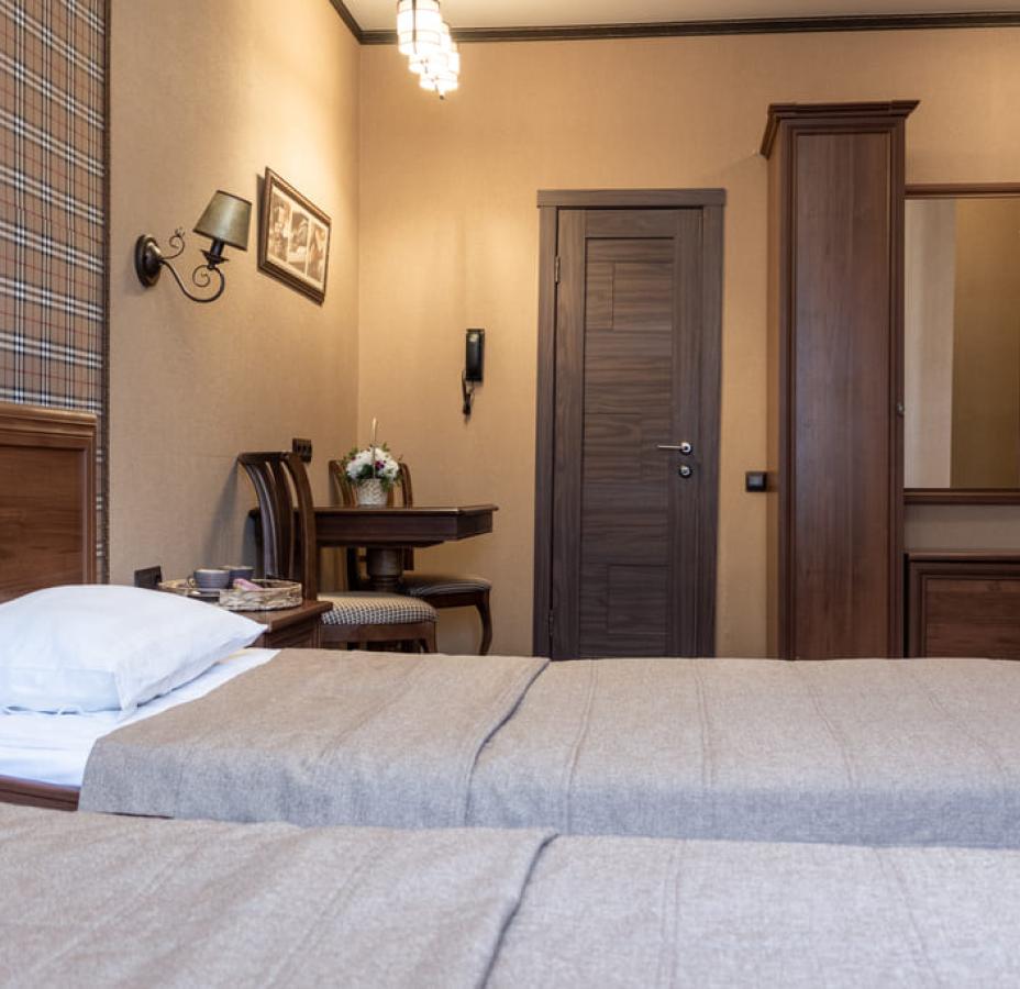Спокойные тона замечательной клетки «Barberry», известной всему миру, именно в них оформлен этот номер. Классическая мебель и текстиль в той же цветовой гамме…. Здесь вы сможете отдохнуть и расслабиться после будничной суеты….