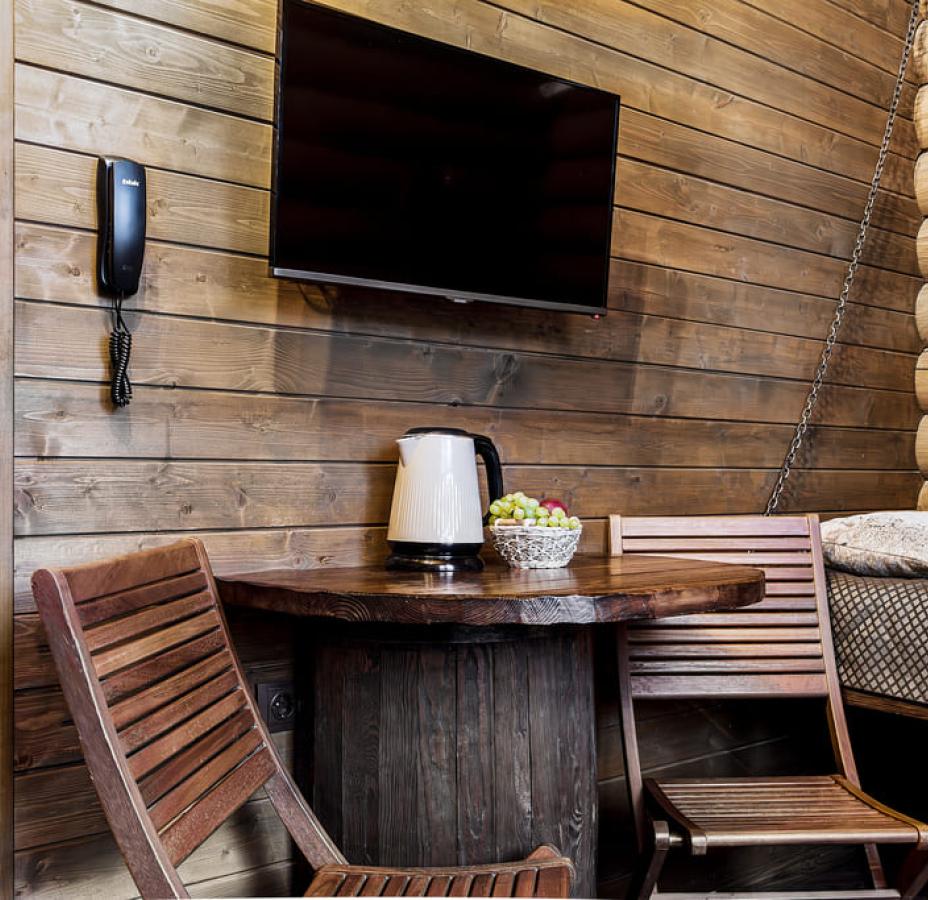 В номере две подвесных кровати и бочка-стол! Вы совершенно точно ощутите в нашей каюте дух морских приключений, а на большой старинной карте, быть может, откроете для себя новые неизведанные острова…