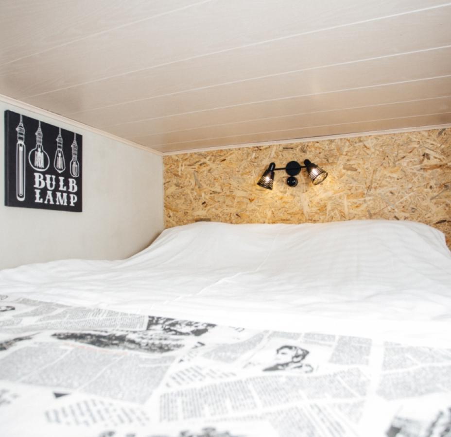 Так и в этом номере, пусть небольшом, но уютном. Вся мебель сделана нами вручную специально для этого номера…. А кровать под потолком с чердачной лестницей – фишка номера.