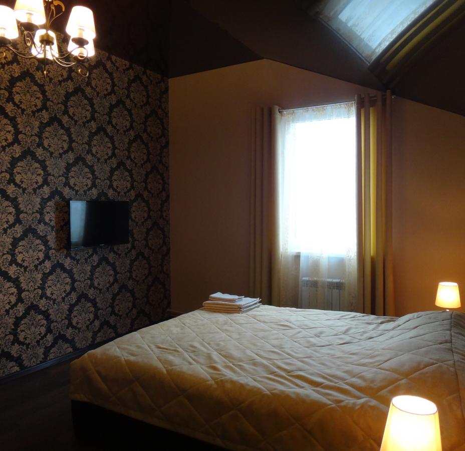 Большая комната с двуспальной кроватью и диваном-трансформером — обеспечит комфортное размещение семьи из 4х человек.